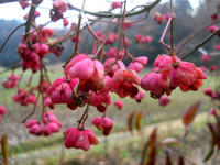 「土壌小動物観察会参加記・その4」をお届けさせていただきます・・・カヤネズミの巣の近くには、オオカマキリの卵鞘(らんしょう)がありました。中ではたくさんの卵たちが寒さに耐えながら春を待ちわびていることと思います。・°・。谷戸の林縁ではたわわに成ったマユミの実が、枯野に彩りを添えておりました。・°・。観察会を終えての帰り道、ちいさな牧場の前で立ち止まると、乳牛?たちがじっとこちらを見つめておりました(^^)。・°・。その5へつづく・・・アトリエ☆イボヤギ 木村大介2017年の春頃より多忙な状況が重なってしまい、ブログの更新が大幅に遅れた状態が続いておりますが、日付順に少しずつ更新をさせていただいておりますので、引き続きご高覧いただければ幸いに存じます・・・(*´-`) *尚、様々な訪問記の連載が続いておりますために、実際の日付と投稿の内容にもだいぶ時間の開きが生じてしまい、お見苦しい点も多々ございますが、何卒よろしくお願い申し上げます。。!