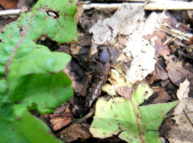 狭山丘陵の野山北・六道山公園で開催された『てくてく自然観察ウォーキング~秋の野草~』参加記・その10をお届けさせていただきます・・・踏みならされた落ち葉の上をツヤ消し調の渋い色合いのハネカクシさんが歩いておりました。後で調べてみると、クロガネハネカクシさんというなんだかカッコいいお名前でした。ハネカクシの中では大型の種類とのことで、体長は2センチ前後あり、確かに存在感がございました。動きも素早くて、ピントをうまく合わせられないままスタスタと歩き去られてしまいました。・°・。クスノキ科のシロダモの鮮やかな赤い実がとても目立っておりました。・°・。。・°・。その11へつづく・・・アトリエ☆イボヤギ 木村大介2017年の春頃より多忙な状況が重なってしまい、ブログの更新が大幅に遅れた状態が続いておりますが、日付順に少しずつ更新をさせていただいておりますので、引き続きご高覧いただければ幸いに存じます・・・(*´-`) *尚、様々な訪問記の連載が続いておりますために、実際の日付と投稿の内容にもだいぶ時間の開きが生じてしまい、お見苦しい点も多々ございますが、何卒よろしくお願い申し上げます。。!