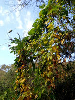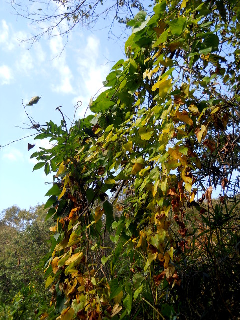 2018年10月28日に狭山丘陵の野山北・六道山公園で開催された『てくてく自然観察ウォーキング~秋の野草~』参加記・その4をお届けさせていただきます・・・ほの暗い谷間を歩いていると、横に張り出した長い枝や、絡み合った太いつる植物が垂れ下がったまるで密林のような景観が観られました。・°・。坂を下り切って谷戸の開けた場所に出ると、樹の枝に絡みついたヤマノイモの葉が茂っておりました。散策路から少し距離が遠くて確認できませんでしたが、おいしそうなムカゴもたくさん成っているのかな?と思いました(o^-^o)。・°・。狭山丘陵にはいくつもの谷戸があって、そのうちのひとつである宮野入谷戸に出ました。この谷戸には水田があって、ボランティアの方々で田植えから収穫まで行われているそうです。木漏れ日の射す木陰の道は爽やかな朝の空気で満たされておりました。・°・。その5へつづく・・・アトリエ☆イボヤギ 木村大介2017年の春頃より多忙な状況が重なってしまい、ブログの更新が大幅に遅れた状態が続いておりますが、日付順に少しずつ更新をさせていただいておりますので、引き続きご高覧いただければ幸いに存じます・・・(*´-`) *尚、様々な訪問記の連載が続いておりますために、実際の日付と投稿の内容にもだいぶ時間の開きが生じてしまい、お見苦しい点も多々ございますが、何卒よろしくお願い申し上げます。。!