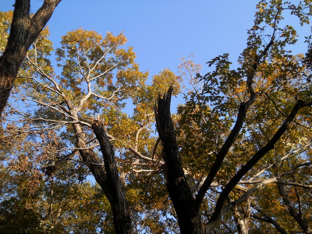 晩秋の東大和公園自然観察記・その5をお届けさせていただきます・・・紅葉や黄葉の進んだ樹々が目を楽しませてくれました。見事な黄葉はアオハダという樹木です。樹皮は灰褐色ですが、うすい樹皮を剥がすと緑色の肌がすぐに見えることから名付けられたようです。木目の美しい材は寄木細工にも用いられるそうです。・°・。鮮やかな赤い葉が青い空に映えていたのは、春から初夏にかけて、スズランのような小さな白い花を咲かせていたネジキでした。・°・。まだ緑色の葉の間に、赤・黄・緑と三色が入り混じるグラデーションもまたすてきでした。・°・。その6へつづく・・・アトリエ☆イボヤギ 木村大介2017年の春頃より多忙な状況が重なってしまい、ブログの更新が大幅に遅れた状態が続いておりますが、日付順に少しずつ更新をさせていただいておりますので、引き続きご高覧いただければ幸いに存じます・・・(*´-`) *尚、様々な訪問記の連載が続いておりますために、実際の日付と投稿の内容にもだいぶ時間の開きが生じてしまい、お見苦しい点も多々ございますが、何卒よろしくお願い申し上げます。。!