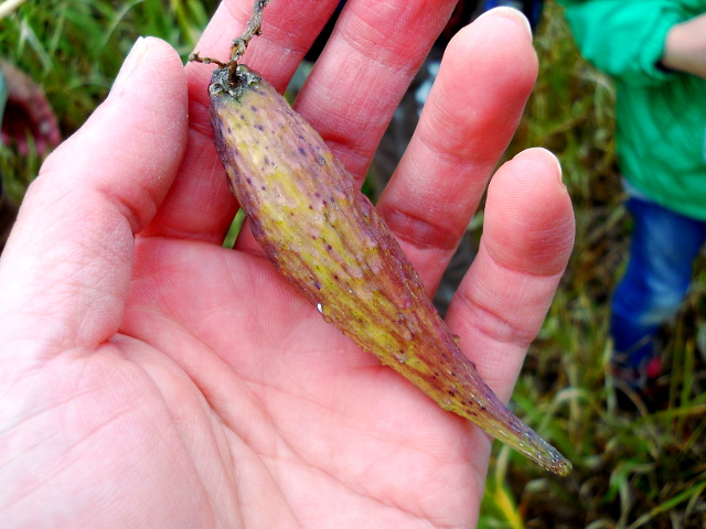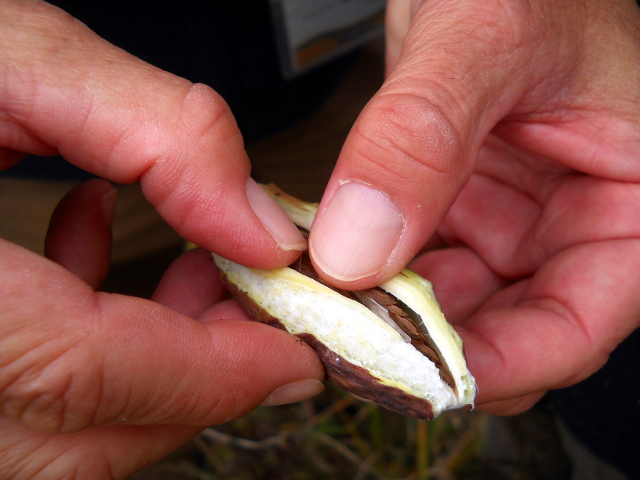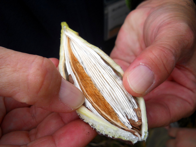 「晩秋の狭山自然公園散策記・その3」をお届けさせていただきます。・°・。キョウチクトウ科の多年草、ガガイモの実をレンジャーガイドさんが縦に割って開いて、中身を見せてくださいました・・・ガガイモはかつて綿の代用として利用されたこともあるそうで、種に付いている綿毛がきれいに収まっておりました(*゜0゜)