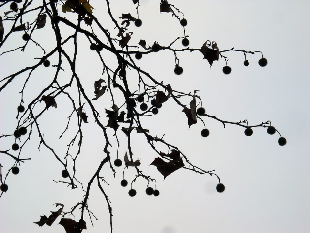 「晩秋の狭山自然公園散策記・その5」をお届けさせていただきます。・°・。観察会のはじめに「きれいに色付いた落ち葉を集めてくださいと」と参加者それぞれにカラフルな紐の付いたポリ袋が渡されました。わたくしも足元をよく見ながら歩いて、目に留まった美しい色合いの落ち葉を張り切って拾い集めました♪ 観察会のおわりに、自分の集めた紅葉コレクションをみんなで持ち寄って見せ合いました(⌒▽⌒) レンジャーガイドさんによる観察会の後、園内をゆっくりと散策しました。植物の種類はわかりませんでしたが、黄色っぽく退色した葉の先の方が鮮やかな赤紫色に染まっているものを見かけました(*゜0゜) アメリカスズカケノキの大木が、クリスマスのオーナメントのような丸い実を梢の先までたくさんつけておりました。・°・。「晩秋の狭山自然公園散策記・完」・・・アトリエ☆イボヤギ 木村大介2017年の春頃より多忙な状況が重なってしまい、ブログの更新が大幅に遅れた状態が続いておりますが、日付順に少しずつ更新をさせていただいておりますので、引き続きご高覧いただければ幸いに存じます・・・(*´-`) *尚、様々な訪問記の連載が続いておりますために、実際の日付と投稿の内容にもだいぶ時間の開きが生じてしまい、お見苦しい点も多々ございますが、何卒よろしくお願い申し上げます。。!