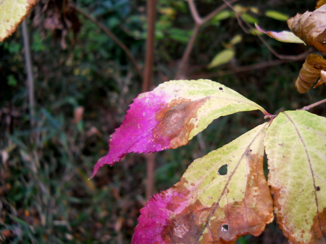 「晩秋の狭山自然公園散策記・その4」をお届けさせていただきます。・°・。大きな朴(ほお)の枯れ葉の散乱している場所で、ホオノキの実も落ちておりました。既に中の赤い実はすっかり無くなっておりました。・°・。カマツカの紅葉も進んでいて、緑色の葉との対比がよく目立ちました。カマツカという和名は、材質が非常に緻密で堅牢なため、鎌の柄に用いられたことに由来するそうです。下から見上げると陽を透かした色合いもまた素敵でした。・°・。その5へつづく・・・アトリエ☆イボヤギ 木村大介2017年の春頃より多忙な状況が重なってしまい、ブログの更新が大幅に遅れた状態が続いておりますが、日付順に少しずつ更新をさせていただいておりますので、引き続きご高覧いただければ幸いに存じます・・・(*´-`) *尚、様々な訪問記の連載が続いておりますために、実際の日付と投稿の内容にもだいぶ時間の開きが生じてしまい、お見苦しい点も多々ございますが、何卒よろしくお願い申し上げます。。!