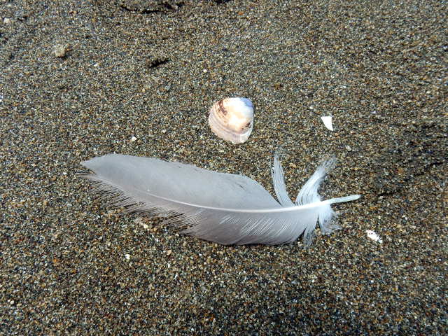 波打ち際を歩いていると、貝殻や鳥の羽を見かけました。・°・。中にはガザミ(ワタリガニ)さんの亡き骸あるいは、脱皮殻かな?と思われるものもございました。・°・。護岸の大きな岩の隙間から、イソガニさんと思われるカニさんが、ゆっくりと辺りを伺いながら這い出てくる姿も観られました。・°・。その4へつづく*この記事の前には12/8(金)分の記事も投稿してございますので、あわせてご覧いただければ幸いです(^-'*)・・・2017/12/09(土) アトリエ☆イボヤギ 木村大介  アトリエ☆イボヤギ公式Twitter:https://twitter.com/atelieriboyagi1