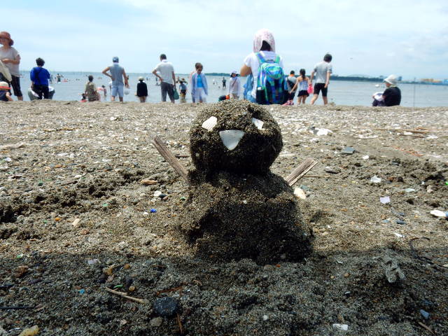 2017年8月13日(日)に訪れた、葛西臨海公園&鳥類園訪問記・その3をお届けさせていただきます・・・人口渚の「西なぎさ」にはアカエイが現れるようですが、注意喚起のイラストのアカエイさんの描かれ方は、ちょっと悪役感強過ぎかな。。と思われました(^_^;)  渚の管理事務所には西なぎさで観られる生き物図鑑が掲げられておりました。思っていた以上に様々な生き物が生息していることを知りました。・°・。砂浜には誰かがこさえた、砂だるま?さんが鎮座されておりました(^▽^)