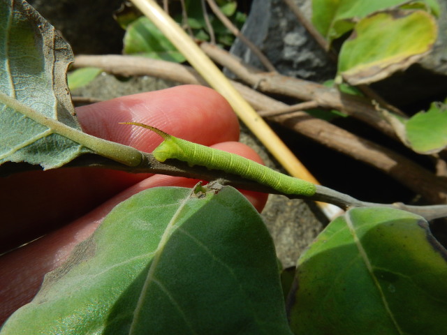様々な海浜植物を目にしたのですが、名前が判明したのは紫色の花を咲かせていたハマゴウだけでした(*´-`) 草花に見えましたが、小低木とのことで、葉っぱをお風呂に入れるとよい香りがするそうです(*^ - ^*) そのハマゴウの茎に、スズメガさんの仲間の小さな幼虫がついておりました(*゜0゜)。・°・。その5へつづく*この記事の前には12/9(土)分の記事も投稿してございますので、あわせてご覧いただければ幸いです(^-'*)・・・2017/12/10(日) アトリエ☆イボヤギ 木村大介  アトリエ☆イボヤギ公式Twitter:https://twitter.com/atelieriboyagi1