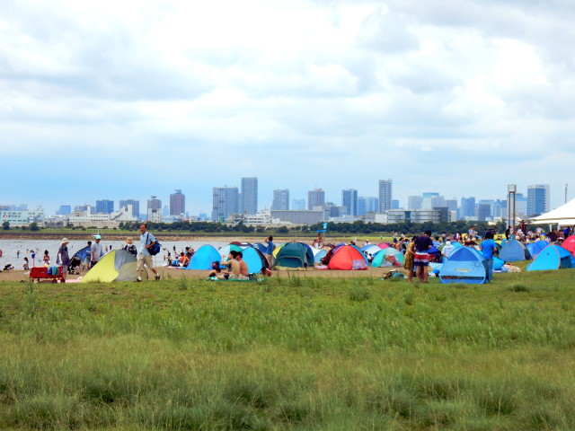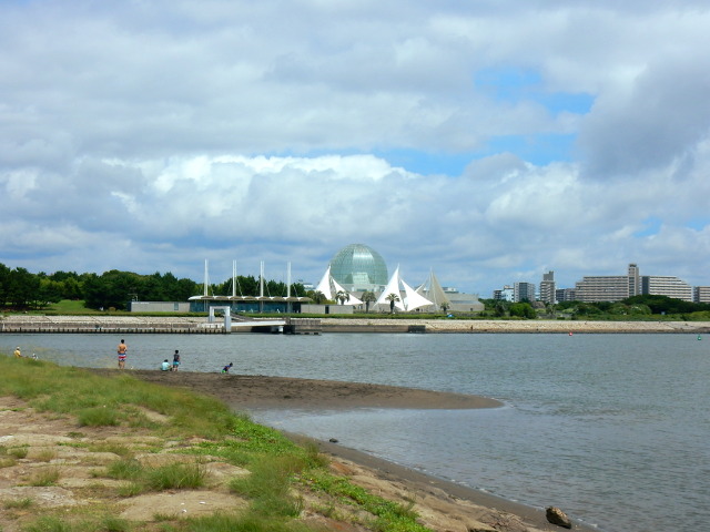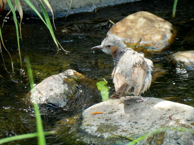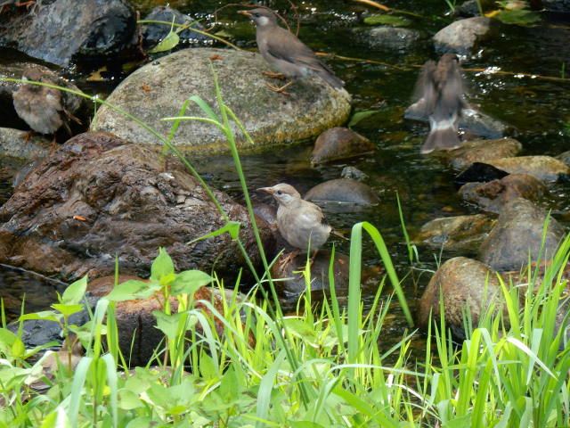 2017年8月13日(日)に訪れた、葛西臨海公園&鳥類園訪問記・その5をお届けさせていただきます・・・西なぎさの浜辺には、たくさんの行楽客が日除けテントを張るなどして、海辺の休日を楽しんでおりました(^^) 対岸の臨海副都心のビル群を背景に観ると、なんだかシュールな感じにも映りました。・°・。年パスを使って葛西臨海水族園に入り、しばらく炎天下で火照った身体を癒しました。。屋外にある水辺の自然コーナーの「流れ」の水辺には、ムクドリさんの幼鳥やヒヨドリさんたちが気持ちよさそうに水浴びに興じておりました(*^ - ^*)
