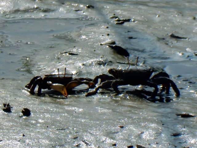 2017年8月13日(日)に訪れた、葛西臨海公園&鳥類園訪問記・その7をお届けさせていただきます・・・鳥類園の観察ポイントの移動途中、松林の中で大きなスズメバチの巣を見つけました(*゜0゜)コガタスズメバチかキイロスズメバチのものかと思われましたが、下の方が壊れかけていて蜂の姿はございませんでした。。(*´-`)  泥干潟が間近に見える観察窓から、ヤマトオサガニさんたちが潮の引いた泥の上に姿を現しておりました。・°・。すぐそばの岩の上に飛来したイソシギさんが、岩を駆け降りる姿を観ることが出来ました♪