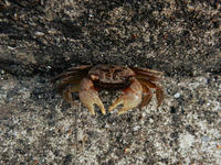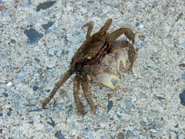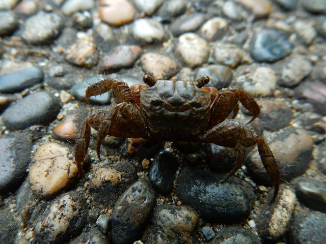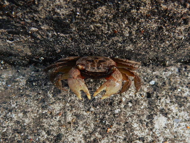 陽が傾いて薄暗さを増していく園内の道で、何かが足元を素早く走り抜けるのを目にしました・・・なんだろう?と後を追うと。。それはアカテガニさんのメスでした(この時はまだ種類が分からず後で知りました)。 しばらく歩くと、岩の隙間などから次々に大きなアカテガニさんのオスも姿を現しました(*゜0゜)大きなハサミと赤味の強いたくましいものから、小さな子ガニまでたくさんのカニファミリーと遭遇出来ましたv(^▽^)v。・°・。その8へつづく*この記事の前には12/3(日)分の記事も投稿してございますので、あわせてご覧いただければ幸いです(^-'*)・・・2017/12/04(月) アトリエ☆イボヤギ 木村大介  アトリエ☆イボヤギ公式Twitter:https://twitter.com/atelieriboyagi1