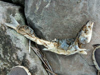 2017年8月5日(土)に訪れた、葛西臨海水族園訪問記・その9をお届けさせていただきます・・・臨海公園の海岸沿いに歩いていると、ボラさんやクロダイさんかな?と思われる干からびた亡き骸を目にしました・・・(*´-`)  堤防の内側に生えた芦原では、たくさんのカニを見かけました。。
