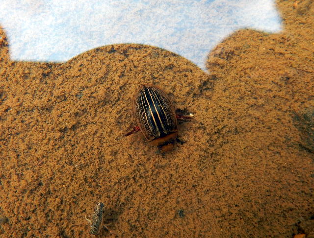 2017年7月23日(日)に訪れた、東京と埼玉にまたがる狭山丘陵にある、都立 野山北・六道山公園訪問記・その10をお届けさせていただきます・・・水田の中を覗き込んでみると・・・コシマゲンゴロウさんがおりました(*゜0゜) 後ろ脚のオール漕ぎ姿が、なんだかとってもキュートでした(*^ - ^*)  近くの葉陰では、赤銅色系統のスジコガネさんも見かけました。・°・。*