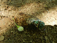 2017年7月22日(土)に訪れた、東京都薬用植物園訪問記・その6をお届けさせていただきます・・・園内にある園芸売店の店先で、センニチコウの赤い花が強い陽射しを受けて、目に鮮やかに映りました。・°・。ハラビロカマキリさんが葉の裏で、捕まえたばかりの獲物をお召し上がりになられておりました。・°・。ウッドチップのしきつめられた地面に、ミンミンゼミさんの亡き骸がエゴノキの実と並んで落ちておりました。・°・。*
