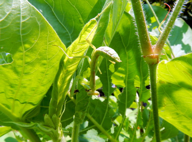 下から見上げると翅の表面の青メタリックがきれいです。。しかし、更に目を凝らしてよく見ると、なんと白いアズチグモのメスに捕らえられておりました(・・;)。・°・。その5へつづく・・・2017/11/04(土) アトリエ☆イボヤギ 木村大介  アトリエ☆イボヤギ公式Twitter:https://twitter.com/atelieriboyagi1
