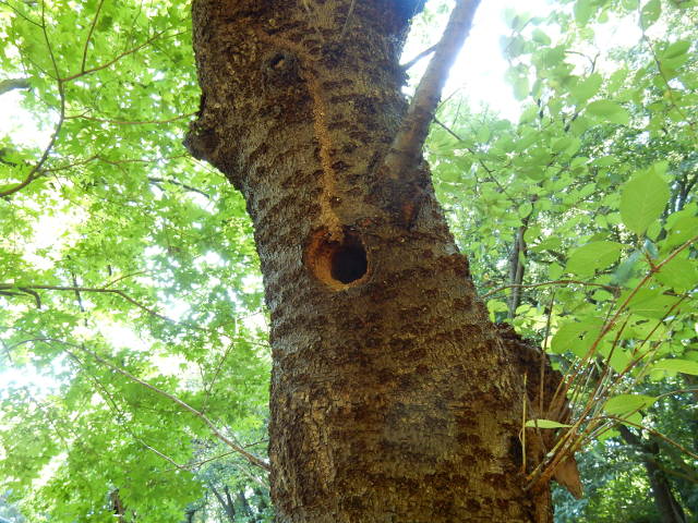 2017年7月20日(木)に訪れた多摩動物公園訪問記・その9をお届けさせていただきます・・・キリンたちのいるサバンナコーナーの近くで、キリンのような色模様の毛虫さんを見かけました(^^) 園路を歩いていると、長い羽軸に細やかな毛の生えた白く美しい羽根を拾いました。。いったいどなたの羽だったのでしょうか・・・? 幹に大きな穴の開けられた樹木を見かけました。これはキツツキさんの仲間の巣かなぁ?と思いました。・°・。(^◇^)