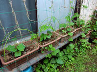*様々な訪問記の連載が続いて来た為、実際の日付からだいぶ遅れてしまいますが・・・7/3(月)の話題を綴らせていただきます。・°・。今年のグリーンカーテンはゴーヤーをメインで行こうと決めて種蒔きをしましたが、その苗が本葉の数を順調に増やし始めております。・°・。アパートの敷地に自然に生えていた赤紫蘇の実生苗を、そっと抜いて集めてプランターに植えてみました。・°・。玄関ドアの上り口の隙間には、セダムの仲間がだいぶこんもりと茂って、花も咲き始めました♪ 南向きで日当たりが良いのと、週一で液肥を与えていたのが功を奏したようです♪