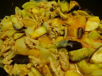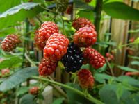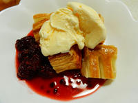 先日ゲットした巨大なナスは、イエローカレーの素を使ってタイカレーに入れました。夏の暑さが増す中、よい汗をかきながらおいしくいただきました♪ 裏庭のブラックベリーは熟した分から砂糖に漬け込んで生ジャムとして、アップルパイにアイスクリームと一緒にトッピングしたりして、初夏の味覚を楽しんでおります(*^ - ^*)