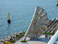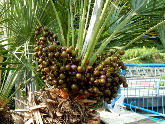 友人家族からのお誘いを受けて、千葉県の房総半島にある鴨川に遊びに出かけました。・°・。途中に立ち寄った東京湾アクアラインの海ほたるパーキングエリアでは、真っ青な空に夏の陽射しがまぶしく感じられました(^^) 敷地に展示されていた、海底トンネルの掘削に使われたのと同じ「刃」を見ていると、大好きなゴーフルを連想してしまいました(o^-^o)  海沿いのホテルに着くと、駐車場の脇に小粒の実をたくさんつけたヤシの樹?がございました。・°・。〇