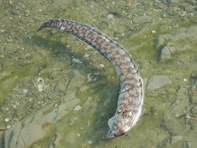 波のかかる岩の割れ目には、イソガニさんでしょうか?打ち寄せる波間から、こちらをじっと見つめ返されました(・・;)  波打ち際を歩いていると、丸太のようなものが漂っているのに気付きました・・・近くによるとそれは大人の腕ほどの大きさのウツボさんの亡き骸でございました。。(>_<); その3へつづく・・・*この記事の前には9/23(土)分の記事も投稿してございますので、あわせてご覧いただければ幸いです(^-'*)  2017/09/24(日) アトリエ☆イボヤギ 木村大介  アトリエ☆イボヤギ公式Twitter:https://twitter.com/atelieriboyagi1