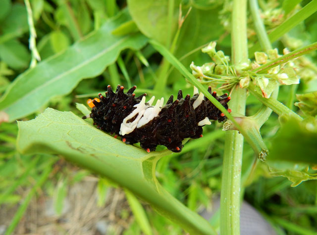 水路沿いの草地では色味の濃いベニシジミさんもよく見かけました。・°・。イガイガがユニークな、ミクリの実もたくさん実っておりました。・°・。金塚桜広場を出て、河川敷の方へ歩いていくと、ジャコウアゲハさんの幼虫がおりました。・°・。その3へつづく*この記事の前には8/10(木)分の記事も投稿してございますので、あわせてご覧いただければ幸いです(^-'*)  2017/08/11(金) アトリエ☆イボヤギ 木村大介