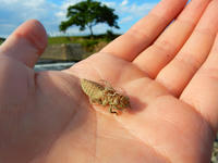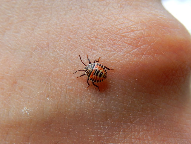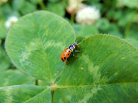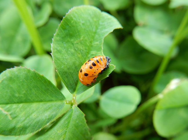 友人と四葉のクローバー探しに興じて、わたくしは4本見つけましたが、7本見つけた友人にはかないませんでした(*゜0゜) シロツメクサの葉の上に、テントウムシに似ているけれどなんとなく違うような甲虫を見かけました・・・後で調べて、それは初めて見るジュウサンホシテントウさんだと知りました。身体が扁平で細長い感じなのであまりテントウムシらしくありませんが、テントウムシ科の昆虫でした。湿地帯を好む種類のようで、個体数が少ないそうなので、今回みられてラッキーだと感じました♪ 小さなカメムシの幼虫も見かけましたが、背面の模様が和的な繊細さで大変素敵でした。・°・。その4へつづく・・・2017/08/12(土) アトリエ☆イボヤギ 木村大介