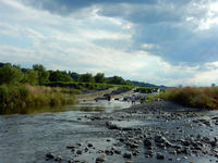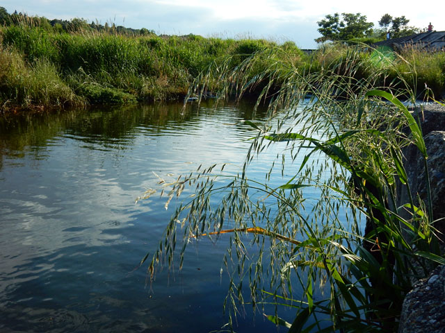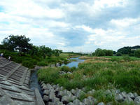 魚道のある堰より上流側の水面は、雲を映して静かにゆったりと流れておりました。・°・。河川敷には細かい紫色の花がきれいな、南アメリカ原産の帰化植物、ダキバアレチノギクと思われる草花がたくさん咲いておりました。・°・。河原には水遊びや魚取りに夢中になっている、子供たちの姿も多くみられました♪ その5へつづく*この記事の前には8/12(土)分の記事も投稿してございますので、あわせてご覧いただければ幸いです(^-'*)  2017/08/13(日) アトリエ☆イボヤギ 木村大介