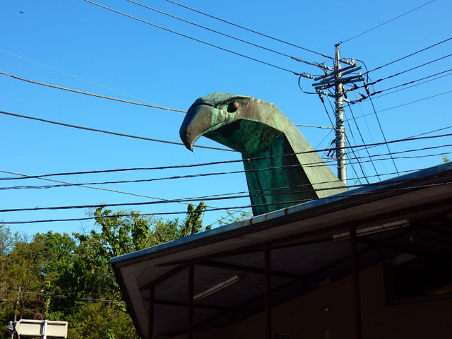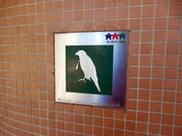 湖畔には桜の名所もあって、その近くの公衆トイレは通称「オオタカのトイレ」と呼ばれており、外観に銅製のオオタカがあしらわれていて、なかなかカッコよいお姿でございました(*゜0゜) 男性用・女性用を示すプレートも、鷹のシルエットにネクタイとリボンで表されていてステキでした(^-'*)