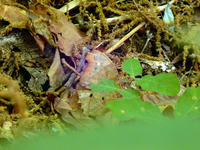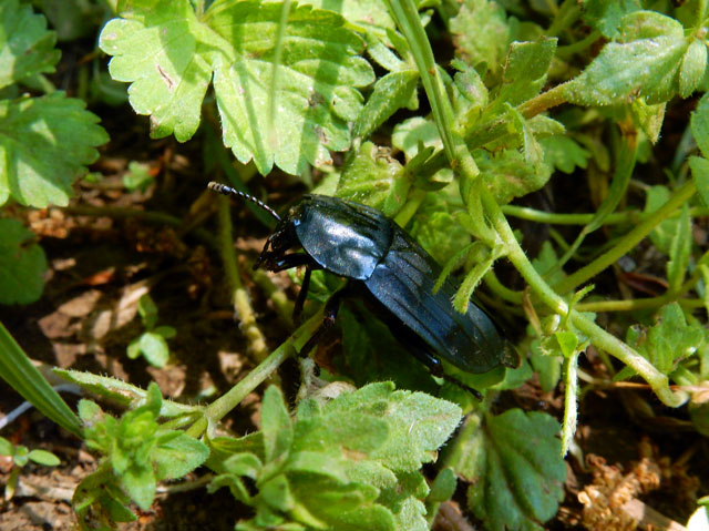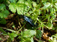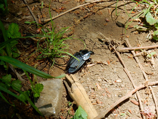 5/5(金)に訪れた近所の雑木林と水辺の自然散策記・その2をお届けさせていただきます・・・雑木林を出て、湧水の流れ込んでいる池の畔にやって参りました。ヒラタシデムシさんが木陰から急ぎ足で這い出て来て、草の間で留まりました。何をするのかな?と観ていると、前脚で触角のお手入れをされ始めましたました(^^)