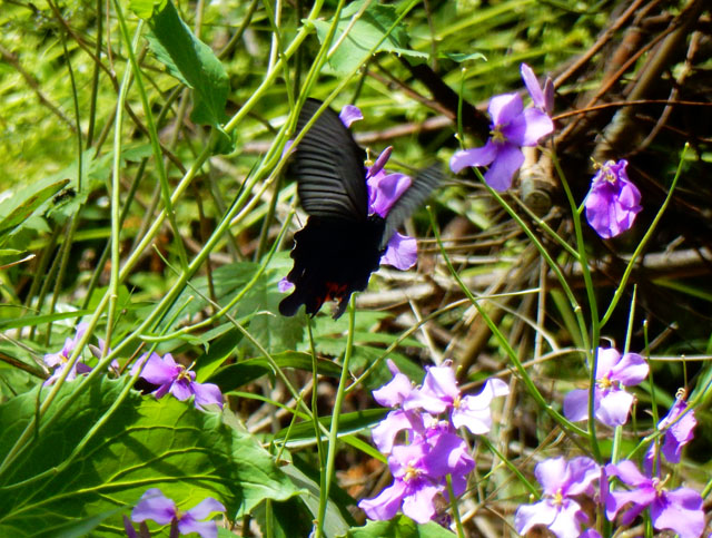 とても背の高い草でしたが、オオイヌノフグリに似た薄青紫色の花が気になったので、風にゆれる対象を望遠レンズでなんとか写してみました。後で調べたところ、オオイヌノフグリと同じゴマノハグサ科のオオカワヂシャという外来種だと知りました。在来種のカワヂシャと交雑してしまうため、特定外来生物に指定されているそうです。・°・。雑木林に向かう道中にあった取水場の柵の中に、ちょっとかわいらしいロボットのような形をした蛇口を見かけました(^^)  しばらく住宅街を歩きましたが、間もなく雑木林に差し掛かりました。近くには乗馬クラブがあって、馬小屋の匂いがしました。・°・。オオアラセイトウの花にクロアゲハさんが訪れておりました。・°・。その2へつづく*この記事の前には5/22(月)分の記事も投稿してございますので、あわせてご覧いただければ幸いです(^-'*)  2017/05/23(火) アトリエ☆イボヤギ 木村大介