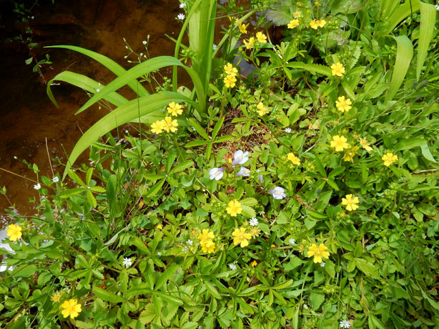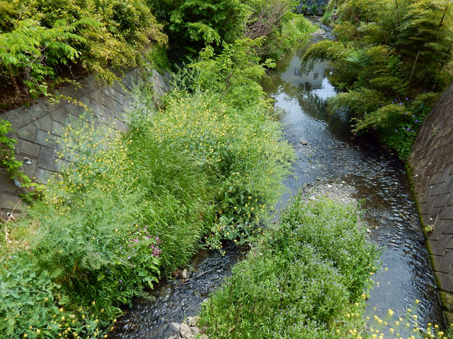最近、大好物のブロッコリーを値引きでゲットする機会に恵まれております。ボイルしたのにマヨネーズを付けながらいただくのが特に好きです。イチゴもそろそろシーズン終盤に近づきました。。薄くスライスしたイチゴに、バニラアイスを添えていただくのがお気に入りの食べ方です。・°・。それでは5/4(木)に訪れた、狭山丘陵に点在するナショナルトラストの「トトロの森」自然散策記・その1をお届けいたします・・・今回は西武狭山線の下山口駅で降りて歩き始めました。・°・。柳瀬川という小川に架かる櫻淵橋から、様々な野草が川岸や中州に茂っているのを見ました。。