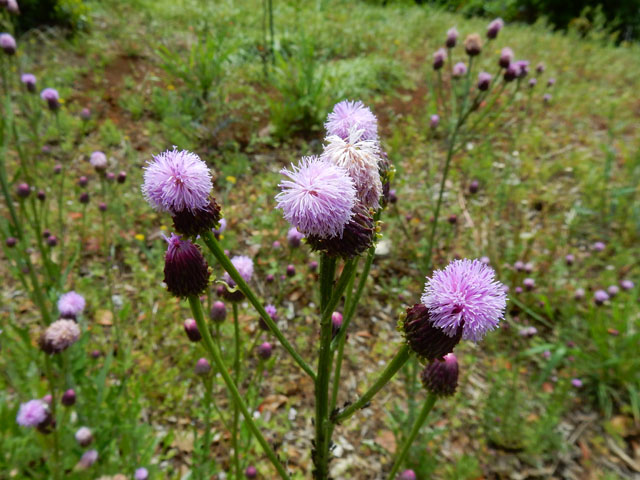雑木林の木陰の先に、見晴らしの良い開けた草地が広がっておりました。タンポポの花がたくさん咲いていて、その花のひとつを友人が裏返して外総苞片を確認しましたところ・・・反り返っておりませんでしたので、もしかしたらカントウタンポポの優勢地なのかな?と思い、辺り一帯の花もチェックしてたところ、セイヨウタンポポも咲いているものの、結構な数のタンポポが在来種のようでした。ただ気になったのは、タンポポにとってはあまり好みではなさそうな日陰っぽい場所の方が、カントウタンポポ率が高いようだということでした。・°・。緩やかな下り坂の先に、より開けた荒れ地のような場所に出ました。そこには薄紫色をしたキツネアザミの花がたくさん咲いておりました♪ 花の形が眉刷毛に似ていることから、キツネノマユハケという別和名もあることを知りました。なんだかそちらの方が風情を感じられて素敵だな。。と思ひました(^^)。・°・。その3へつづく 2017/05/24(水) アトリエ☆イボヤギ 木村大介