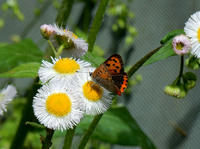 田んぼの脇の細い水路には後ろ足の生えたオタマジャクシもおりましたが、なんの種類かは分かりませんでした。。畦の土の上にシオヤトンボさんが留まりました。シオカラトンボさんによく似ておりましたが、シオカラトンボの雄は腹部先端部が黒く染まっているのに対して、シオヤトンボの雄は先端まで青白い点で区別できました(^^) ハルジオンの花にはキタテハさんが訪れておりました。・°・。その5へつづく 2017/05/26(金) アトリエ☆イボヤギ 木村大介