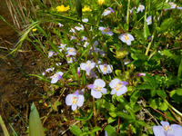 5/4(木)に訪れた、狭山丘陵自然散策記・その3をお届けいたします・・・林の中の土の道を歩いていくと、やがて視界が開けて菩提樹田んぼと呼ばれる水田にたどり着きました。田んぼの畦にはムラサキサギゴケの大きな花がたくさん咲いておりました(^^)