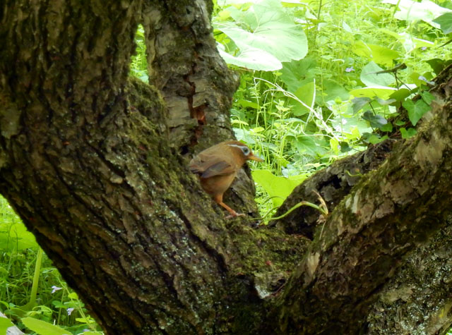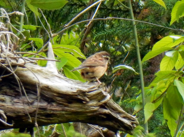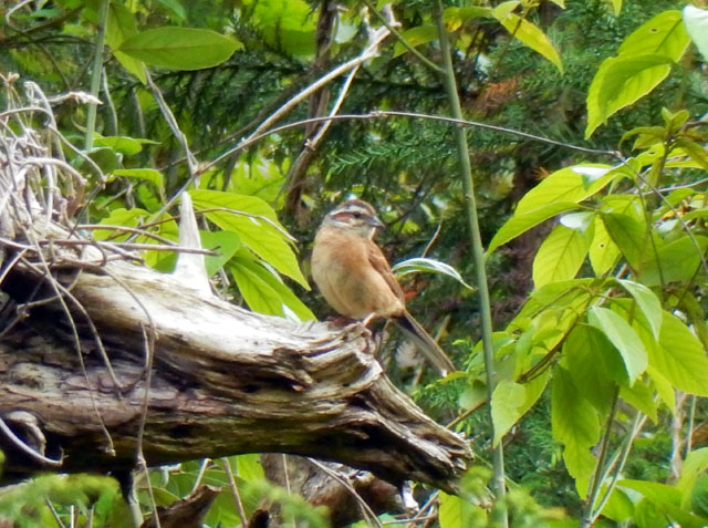 再び御岳渓谷の遊歩道に戻って自然観察散策を続けました。青紫色のラショウモンカズラがたくさんの花を咲かせておりました。・°・。森林更新の為に?伐採されて間もない斜面で、聞き覚えのある鳴き声を耳にしたので、辺りを見回しておりますと・・・それはホオジロさんの雌でした。遠くにいたのでピンが甘いですが、お尻を向けて少し首をかしげている姿にも癒されました(*^ - ^*)。・°・。その5へつづく*この記事の前には5/19(金)分の記事も投稿してございますので、あわせてご覧いただければ幸いです(^-'*)  2017/05/20(土) アトリエ☆イボヤギ 木村大介