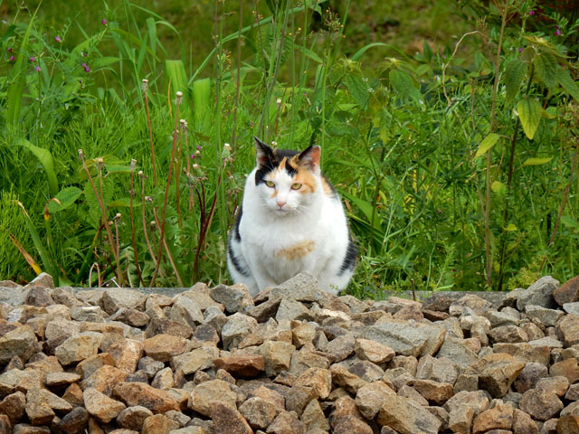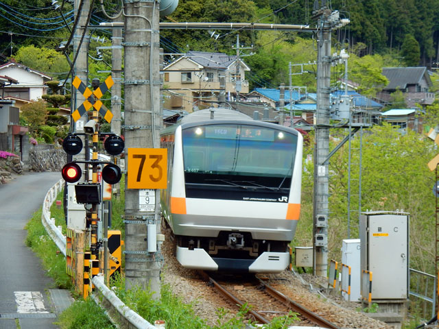 踏切が鳴って奥多摩行きの青梅線が向かって参りましたが、目の前の線路端には三毛猫さんがじっと前方を見詰めながら座っておりました。。すぐそばを通過する列車には何ら動ずることなくそのまま鎮座され続けました。・°・。梅の樹の間を、聞きなれない鳴き声を立てながら飛び回っている小鳥がおりましたので、注意深く探していると・・・それは、誰かの鳴きまねをしているガビチョウさんでした(^_^;) その5へつづく・・・2017/05/19(金) アトリエ☆イボヤギ 木村大介