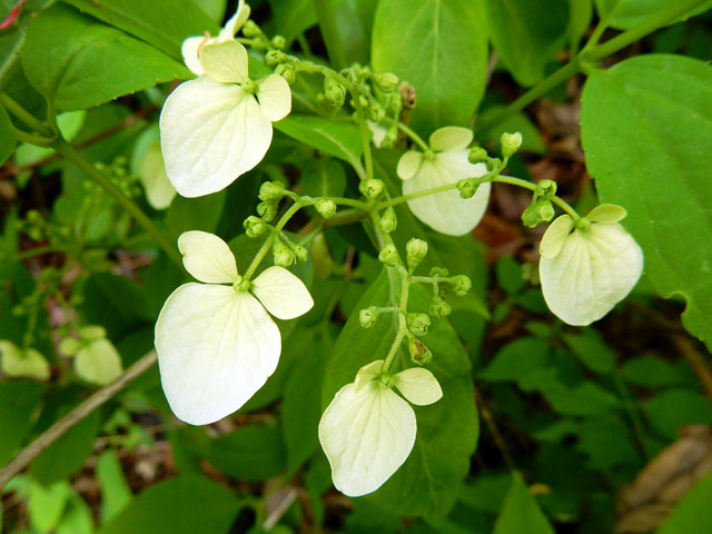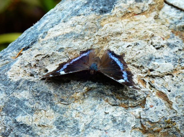 5/3(水)に訪れた東京都青梅市にある御岳渓谷散策記・その6をお届けさせていただきます・・・ホオジロさんを見つけたのと同じ、伐採後の開けた場所の岩の上に、ルリタテハさんが舞い降りました(^^)  色の濃いカキドオシの花も見かけました。・°・。開けた場所を抜けて、再び樹木の茂っている木陰の道を進みました。・°・。紫陽花の花に少し似ている白い花(額?)を時折見かけました。・°・。*