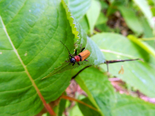 その花の上に一見、細長いアリかあるいはジョウカイボンの仲間かな?と思わせる黒っぽい虫がおりました。しかし翅の部分をよく見ると、どうやら甲虫の仲間ではないようです。別の場所で今度はジョウカイボンの仲間を見つけました。「その4」でご紹介したミヤマクビアカジョウカイさんによく似ておりましたが、後で調べてウスチャジョウカイというお名前だと知りました。・°・。巨木たちの立ち並ぶ清流沿いの道は、歩いていてとても落ち着きました。・°・。その7へつづく*この記事の前には5/20(土)分の記事も投稿してございますので、あわせてご覧いただければ幸いです(^-'*)  2017/05/21(日) アトリエ☆イボヤギ 木村大介