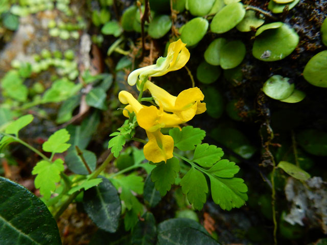 5/3(水)に訪れた東京都青梅市にある御岳渓谷散策記・その7をお届けさせていただきます・・・渓谷沿いの遊歩道から岩を伝って川岸に降りてみると、マンネングサの仲間の黄色い花が天の川のように満開に咲き誇っておりました。・°・。☆ 岩の間にはキケマンの花も咲いておりました。・°・。行きは渓谷の北側の歩道を通り、帰りは南側を歩いたのですが、こちら側の方が巨木が多く感じました。3枚目の写真はケヤキでしょうか?マメヅタの覆う樹皮を見上げると、三本の幹が並んでそびえ立っておりました(*゜0゜)