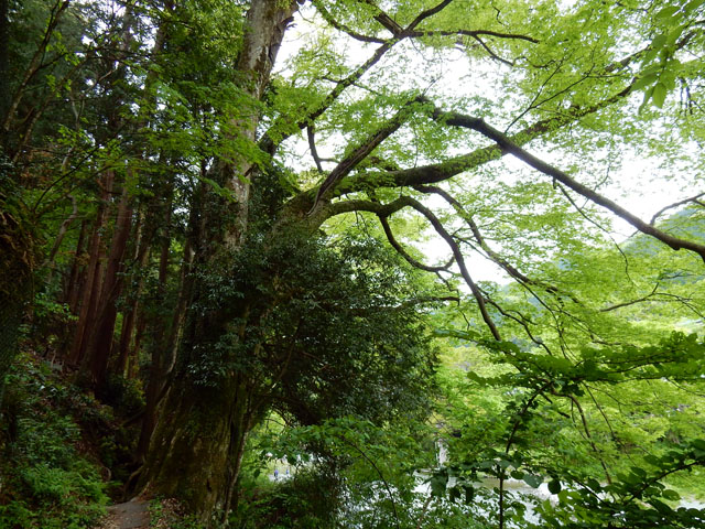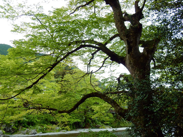 巨木たちの川面に向かって長く伸びた枝が印象的でした。・°・。最後に靴を脱いで、歩き疲れた足を冷たい清流に浸しました。。5分と浸けていられない程の冷たさでしたが、おかげで疲労感がすっかり癒されて、また元気に歩き出せました(^-^ゞ 2017/05/22(月) アトリエ☆イボヤギ 木村大介