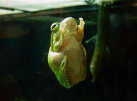 今年も拙宅アパートの縁台では、プランター植えのチューリップたちが明るい日差しの下で次々と咲いてくれました。球根を肥やすためにも、咲いた花は切り花として部屋に飾ることにしておりますが、先日はたくさんの品種がそろったのでいっそうにぎやかになりました(^^)  それでは、先月3/20(月)の開園記念日に訪れた上野動物園訪問記・その6をお届けさせていただきます・・・ビバリウムの日本産両生爬虫類コーナーのシュレーゲルアオガエルさんは、今回も水槽のガラス面に張り付いて観客を逆観察されておりました。・°・。*