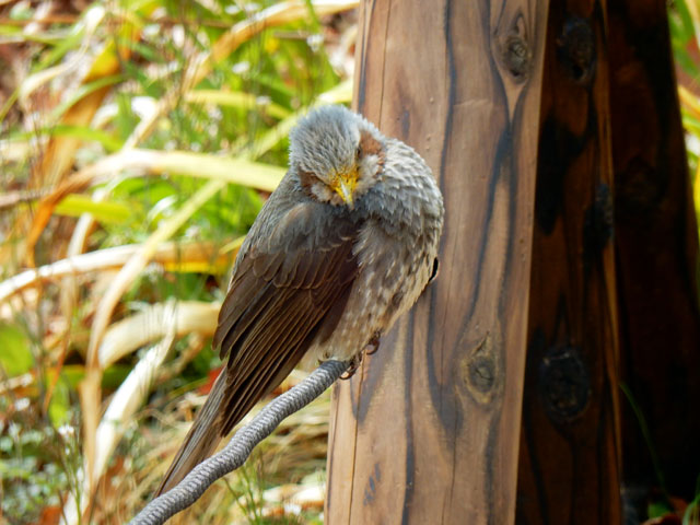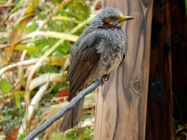 湧水の流れ込んでいる小さな池の畔で、くちばしの黄色いヒヨドリさんを見かけたので、おそらく巣立ったばかりのヒナかな?と思いながら、しばらくそのあどけない仕草を観察しておりましたが・・・