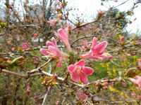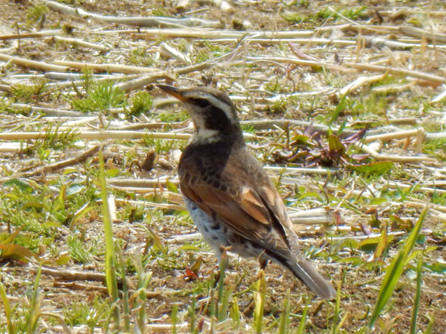 4/2(日)に行った「春の花見の花歩き・その3」をお届けさせていただきます・・・小川の流れる脇ではベニバナマンサクの花が満開の様相で、細かいリボン上の花弁が咲き乱れておりました。・°・。ヒュウガミズキも薄黄色の明るい色調の花がにぎやかに咲いておりました。・°・。湧水池のある公園を離れて、線路を挟んだ反対側にある大きな公園に移動しました。通称バッタらんどの開けた草地では、ツグミさんが凛々しい姿でじっと佇んでおりました。・°・。*