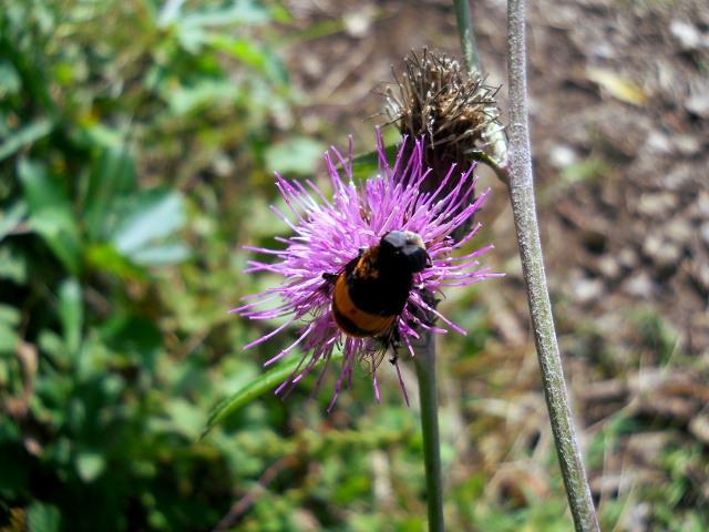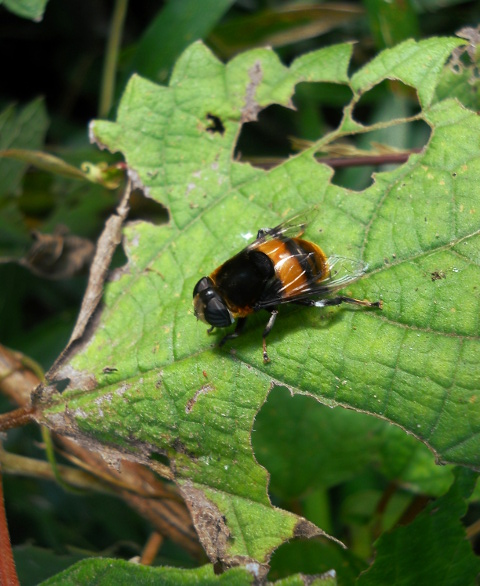 2018年10月28日に狭山丘陵の野山北・六道山公園で開催された『てくてく自然観察ウォーキング~秋の野草~』参加記・その7をお届けさせていただきます・・・繊細な感じのするノハラアザミの花が咲いておりました。形の方はなんとなくムラサキウニのようにも見えました。そのノハラアザミの花に、大きな丸っこいアブが訪れておりましたが、繊細な花にはちょっと体重オーバー気味でした(^_^;) そのアブのお名前はその見た目通りのオオハナアブさんでした。近くの葉の上にとまっていた同じ模様のアブもオオハナアブさんで、こちらは左右の複眼の間が離れておりましたので、メスだと分かりました(オスは左右の複眼がくっついている)。成虫は花の蜜や花粉を食べていて、幼虫が水生で腐食物を餌としているため水辺に多く観られるとのことで、観た場所もやはり水田脇を流れる小川沿いの場所でした。それにしてもなんてかわいらしいアブなんだろうと、その丸っこい姿にしばし癒されました(*^ - ^*)。・°・。その8へつづく・・・アトリエ☆イボヤギ 木村大介2017年の春頃より多忙な状況が重なってしまい、ブログの更新が大幅に遅れた状態が続いておりますが、日付順に少しずつ更新をさせていただいておりますので、引き続きご高覧いただければ幸いに存じます・・・(*´-`) *尚、様々な訪問記の連載が続いておりますために、実際の日付と投稿の内容にもだいぶ時間の開きが生じてしまい、お見苦しい点も多々ございますが、何卒よろしくお願い申し上げます。。!