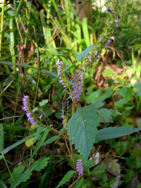 2018年10月28日に狭山丘陵の野山北・六道山公園で開催された『てくてく自然観察ウォーキング~秋の野草~』参加記・その8をお届けさせていただきます・・・反り返った花の付き方が薙刀(なぎなた)に似ている、ナギナタコウジュの薄紫色の花が咲いておりました。シソ科の植物で全体に強い香りがあり、香薷(こうじゅ)という生薬としても用いられるそうです。・°・。ウメモドキのよく目立つ赤い実がたくさん成っておりました。葉や小さな花が梅に似ていることから名づけられたようですが、モチノキ科の植物とのことでした。・°・。樹々の間にちょっと大柄なジョロウグモさんのメスが巣の中央に鎮座しておりました。・°・。その9へつづく・・・アトリエ☆イボヤギ 木村大介2017年の春頃より多忙な状況が重なってしまい、ブログの更新が大幅に遅れた状態が続いておりますが、日付順に少しずつ更新をさせていただいておりますので、引き続きご高覧いただければ幸いに存じます・・・(*´-`) *尚、様々な訪問記の連載が続いておりますために、実際の日付と投稿の内容にもだいぶ時間の開きが生じてしまい、お見苦しい点も多々ございますが、何卒よろしくお願い申し上げます。。!