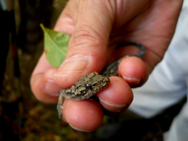 狭山丘陵の野山北・六道山公園で開催された『てくてく自然観察ウォーキング~秋の野草~』参加記・その9をお届けさせていただきます・・・田んぼと林縁の間の道を歩いていると、樹の枝にとまっていたニホンヤモリさんが見つかりました。ガイドさんがそっと捕まえてみんなに見せてくれましたが、つぶらな瞳でじっとおとなしくされておりました。リリースするとスタスタと藪の中に去って行かれました。・°・。谷戸の道を登って尾根道に出ると、まるで食虫植物のような姿のノブキの果実を初めて目にしました(*゜0゜)果実の先端の方にある腺毛(せんもう)は粘着質で、人や動物などにくっついて運ばれる、いわゆるひっつき虫のひとつとのことでした。・°・。陽の辺り場所にはアキノノゲシの薄黄色の花も咲いておりました。・°・。。・°・。その10へつづく・・・アトリエ☆イボヤギ 木村大介2017年の春頃より多忙な状況が重なってしまい、ブログの更新が大幅に遅れた状態が続いておりますが、日付順に少しずつ更新をさせていただいておりますので、引き続きご高覧いただければ幸いに存じます・・・(*´-`) *尚、様々な訪問記の連載が続いておりますために、実際の日付と投稿の内容にもだいぶ時間の開きが生じてしまい、お見苦しい点も多々ございますが、何卒よろしくお願い申し上げます。。!