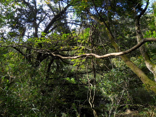 2018年10月28日に狭山丘陵の野山北・六道山公園で開催された『てくてく自然観察ウォーキング~秋の野草~』参加記・その4をお届けさせていただきます・・・ほの暗い谷間を歩いていると、横に張り出した長い枝や、絡み合った太いつる植物が垂れ下がったまるで密林のような景観が観られました。・°・。坂を下り切って谷戸の開けた場所に出ると、樹の枝に絡みついたヤマノイモの葉が茂っておりました。散策路から少し距離が遠くて確認できませんでしたが、おいしそうなムカゴもたくさん成っているのかな?と思いました(o^-^o)。・°・。狭山丘陵にはいくつもの谷戸があって、そのうちのひとつである宮野入谷戸に出ました。この谷戸には水田があって、ボランティアの方々で田植えから収穫まで行われているそうです。木漏れ日の射す木陰の道は爽やかな朝の空気で満たされておりました。・°・。その5へつづく・・・アトリエ☆イボヤギ 木村大介2017年の春頃より多忙な状況が重なってしまい、ブログの更新が大幅に遅れた状態が続いておりますが、日付順に少しずつ更新をさせていただいておりますので、引き続きご高覧いただければ幸いに存じます・・・(*´-`) *尚、様々な訪問記の連載が続いておりますために、実際の日付と投稿の内容にもだいぶ時間の開きが生じてしまい、お見苦しい点も多々ございますが、何卒よろしくお願い申し上げます。。!