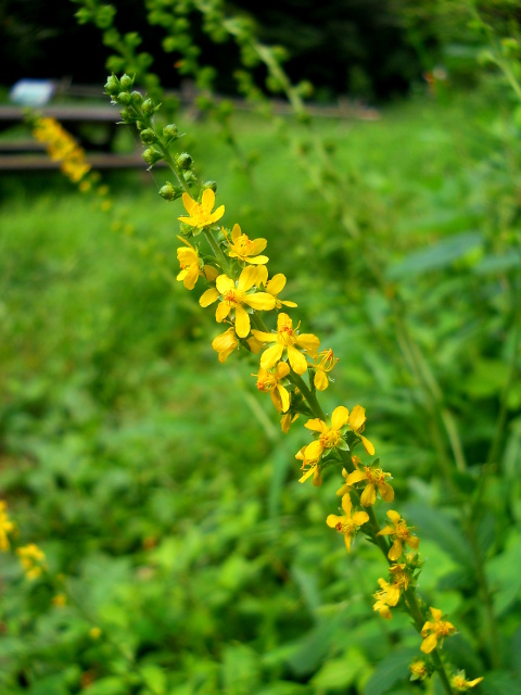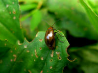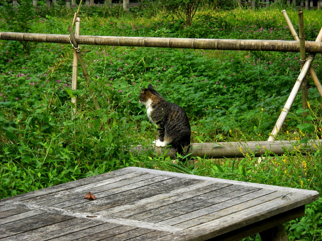 初秋の生田緑地自然観察散策記・その27をお届けさせていただきます・・・たくさんの虫食い穴のある葉の上で、まるで伝統工芸品のような、味わいのある色艶をしたハムシさんを見かけました。調べてみると、ウリハムシモドキさんというお名前で、同種内でもさまざまなカラーバリエーションがあるようでした。・°・。開けた湿地沿いの道にも、キンミズヒキの花が咲いておりました。・°・。陽当たりの良い木の柵の上で、野猫さんが少しうつむき加減でうたた寝をしておりました。・°・。その28へつづく・・・アトリエ☆イボヤギ 木村大介2017年の春頃より多忙な状況が重なってしまい、ブログの更新が大幅に遅れた状態が続いておりますが、日付順に少しずつ更新をさせていただいておりますので、引き続きご高覧いただければ幸いに存じます・・・(*´-`) *尚、様々な訪問記の連載が続いておりますために、実際の日付と投稿の内容にもだいぶ時間の開きが生じてしまい、お見苦しい点も多々ございますが、何卒よろしくお願い申し上げます。。!
