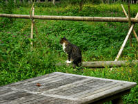 初秋の生田緑地自然観察散策記・その28をお届けさせていただきます・・・湿地帯のウッドデッキの上に、とってもカラフルな落ち葉がありました(*^ - ^*) 近くには目にも鮮やかなヒガンバナの花も咲いておりました。・°・。先程見かけた野猫さんが、いつのまにやら別の場所に移動していて、まるでチシャ猫のようにこちらをじぃーっと観察して?おりました・・・(・・;)。・°・。その29へつづく・・・アトリエ☆イボヤギ 木村大介2017年の春頃より多忙な状況が重なってしまい、ブログの更新が大幅に遅れた状態が続いておりますが、日付順に少しずつ更新をさせていただいておりますので、引き続きご高覧いただければ幸いに存じます・・・(*´-`) *尚、様々な訪問記の連載が続いておりますために、実際の日付と投稿の内容にもだいぶ時間の開きが生じてしまい、お見苦しい点も多々ございますが、何卒よろしくお願い申し上げます。。!