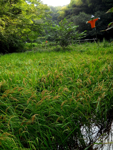 初秋の生田緑地自然観察散策記・その29をお届けさせていただきます・・・木の葉の上にアオマツムシさんがとまっておりました。拡大して観ると、触角や複眼の造形がなかなかステキだなと感じ入りました(*゜0゜) まるでサイケデリックな色彩のヒトデのようなクサギの実が、枝先で目を惹いておりました。・°・。谷間にある水田では実った稲穂を、かかしさんがしっかりと見守っておりました(*^ - ^*)。・°・。その30へつづく・・・アトリエ☆イボヤギ 木村大介2017年の春頃より多忙な状況が重なってしまい、ブログの更新が大幅に遅れた状態が続いておりますが、日付順に少しずつ更新をさせていただいておりますので、引き続きご高覧いただければ幸いに存じます・・・(*´-`) *尚、様々な訪問記の連載が続いておりますために、実際の日付と投稿の内容にもだいぶ時間の開きが生じてしまい、お見苦しい点も多々ございますが、何卒よろしくお願い申し上げます。。!