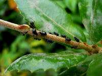 ツユクサのつぼみの上にいたのは、渋い和テイストの印象のあるブチヒゲカメムシさんでした。・°・。樹の小枝の上に黒色の大型のアブラムシさんが群れておりましたが、もしかしたらクリオオアブラムシさんかなと思いました。・°・。その5へつづく・・・アトリエ☆イボヤギ 木村大介 一昨年(2017年)の春頃より多忙な状況が重なってしまい、ブログの更新が大幅に遅れた状態が続いておりますが、日付順に少しずつ更新をさせていただいておりますので、引き続きご高覧いただければ幸いに存じます・・・(*´-`) *尚、様々な訪問記の連載が続いておりますために、実際の日付と投稿の内容にもだいぶ時間の開きが生じてしまい、お見苦しい点も多々ございますが、何卒よろしくお願い申し上げます。。!