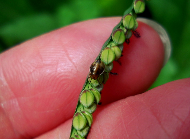 生田緑地の自然観察会リポート・その4をお届けさせていただきます・・・クワの樹にまるっこい身体がかわいらしい、スグリゾウムシさんがおりました(*^ - ^*) きれいな小さな花が連なっていたのはヌスビトハギかな?と思いました。・°・。草むらでは繊細な縞模様の美しいナガコガネグモさんのメスを見かけました。・°・。*